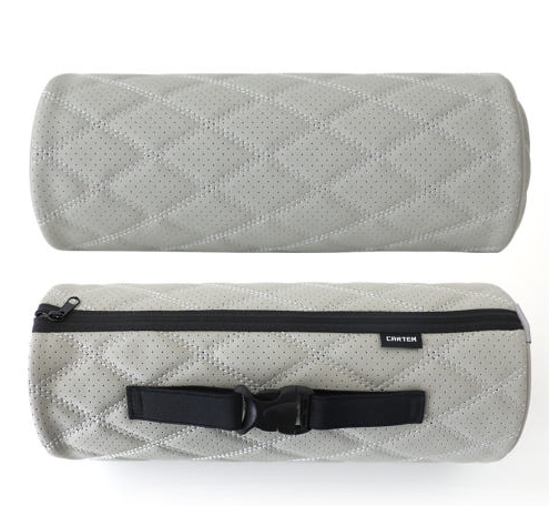 제품에 대한 이점 언급 : 바른자세 도움 / 순정과 같은 일체감 / 고탄성 메모리폼 / 이중 스티치 퀄팅 디자인 / 클립형스트랩 / 편안함