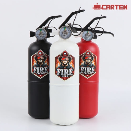 제품에 대한 이점 언급 : KFI 정식 인증, 자동차겸용 소화기, 다용도 사용 가능, 국내 생산, 가벼운 무게 등