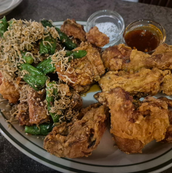 - 효도 꽈리멸 치킨: 꽈리고추 튀김과 멸치를 올린 간장 양념 치킨 효도밥(마늘밥)과 같이 먹으면 밥반찬 조합으로 아주 좋음