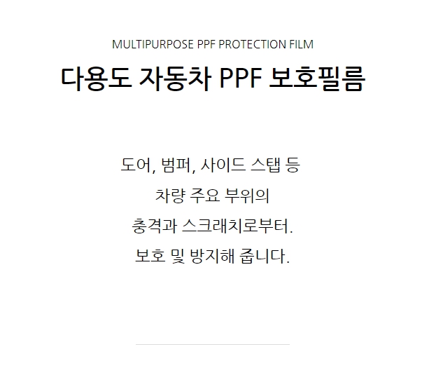 제품에 대한 이점 언급 : 2mm의 두께로 차량주요부위 보호, 편리한 시공, 깔끔한 디자인 등